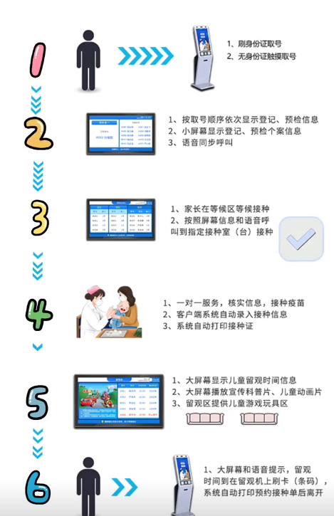 預防接種的叫號機的操作流程六步驟與排隊叫號系統(tǒng)圖