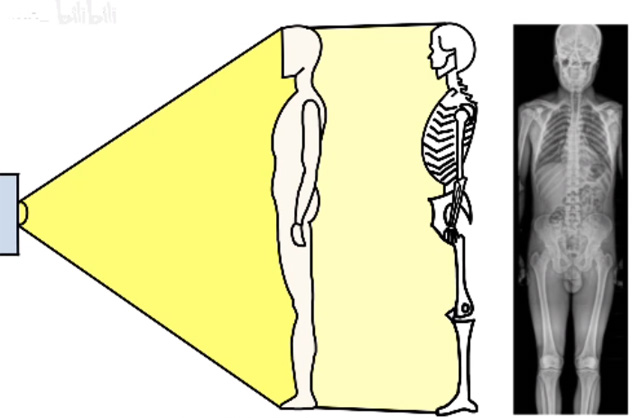這個圖可以直觀感受DR的成像原理,其實我們可以將其看作是一個壓面包的過程將一個面包壓癟以后再進行觀察的過程。