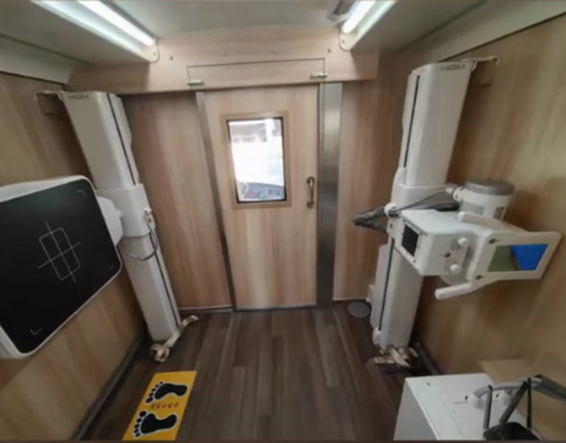 有時候胸口不舒服,腰不好怎么辦呢?車載DR可以實現(xiàn)就地檢查,不需要到醫(yī)院拍胸片進(jìn)行DR超聲檢查。大家能在醫(yī)院完成的體檢項目,都可以實現(xiàn)。醫(yī)生通過外面的電腦,打開和控制設(shè)備。DR會根據(jù)檢查者的身高體型,自動判斷位置移動到檢查的區(qū)域。自動成像,并且在服務(wù)器里面記錄相應(yīng)的數(shù)據(jù)。效率也非常高,當(dāng)天檢查就能當(dāng)天出結(jié)果??梢詽M足突發(fā)事件中傷病員的頸椎、胸椎、腰椎、四肢骨骼、胸部、骨盆、各個關(guān)節(jié)全身的數(shù)字化DR檢查需求。