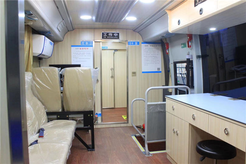 打開DR體檢車上門的開關(guān)。接通電源,啟動控制臺閉合按鍵,攝片功能就可以打開使用了。