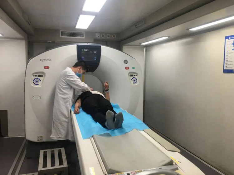 胸部CT檢查對于危重癥的鑒別非常重要。如果血氧飽和度低到一定程度,我們的大腦中樞會感知并出現(xiàn)代償反應。會通過增強呼吸運動增加氧氣攝入,因此會感到氣急、胸悶,老年人可能會反應遲鈍、意識模糊。此外,嘴唇、指甲都可能出現(xiàn)紫紺。降低居民朋友交叉感染的風險,提升疾病篩查的能力,緩解CT影像的資源緊缺,移動CT車開進社區(qū),對于部分患者,特別是有基礎(chǔ)疾病,如老年人,慢阻肺、支氣管疾病、肺癌、心衰、腎衰的患者,要特別小心,可能會出現(xiàn)危重癥,這時候上移動CT車做個肺部CT就非常有必要。