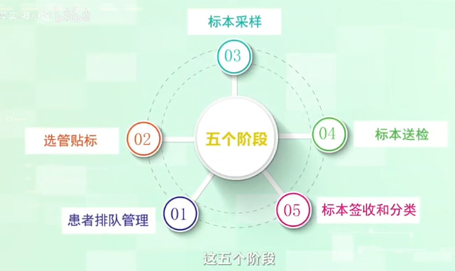 智能采血設(shè)備通過(guò)信息化自動(dòng)化技術(shù)跟醫(yī)院的信息系統(tǒng)連接。分析患者排隊(duì)情況、標(biāo)本采集、選管貼標(biāo)、標(biāo)本分揀、標(biāo)本運(yùn)輸、標(biāo)本簽收全流程進(jìn)行自動(dòng)化和信息化管理。從而有效提高醫(yī)院臨床檢驗(yàn)分析前標(biāo)本處理的工作效率和標(biāo)本質(zhì)量,這一切是如何完成的?首先患者只需要在自助取號(hào)機(jī)上取號(hào)后,在等待區(qū)靜坐等候即可,系統(tǒng)會(huì)自動(dòng)按照次序呼叫病人。選管貼標(biāo),把患者所需要采樣的采血管準(zhǔn)備好,工作人員只需要確認(rèn)患者信息跟抽血就可以了。采樣完成的標(biāo)本可直接投放到自動(dòng)收集軌道。通過(guò)標(biāo)本自動(dòng)運(yùn)輸軌道實(shí)時(shí)運(yùn)輸?shù)綄?shí)驗(yàn)室,然后進(jìn)行實(shí)時(shí)簽收和分類(lèi)。全流程智能采血系統(tǒng)還能夠?qū)崟r(shí)監(jiān)管整個(gè)流程,讓問(wèn)題無(wú)處可藏。及時(shí)發(fā)現(xiàn)跟處理,減少檢驗(yàn)分析前的錯(cuò)誤率。規(guī)范采血流程。