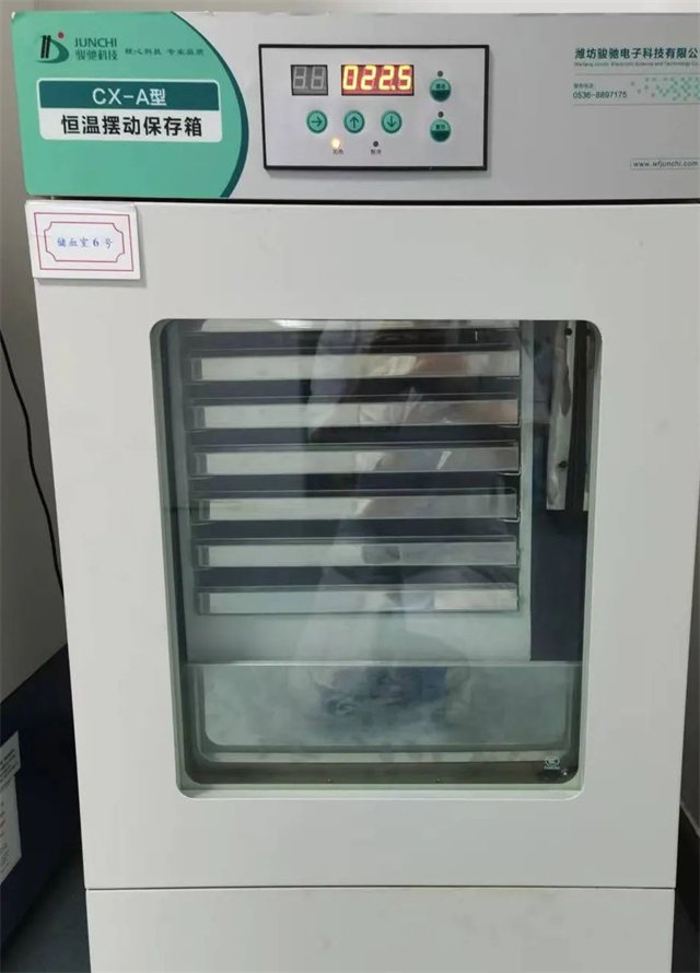 儲(chǔ)血室的各種儀器智能采血設(shè)備帶大家了解一下。儲(chǔ)存血小板的恒溫?cái)[動(dòng)保存箱,溫度在22攝氏度左右,正負(fù)2攝氏度。它的主要功能特點(diǎn)是擺動(dòng),搖擺的幅度是5厘米。1分鐘擺動(dòng)頻率是60次左右。
