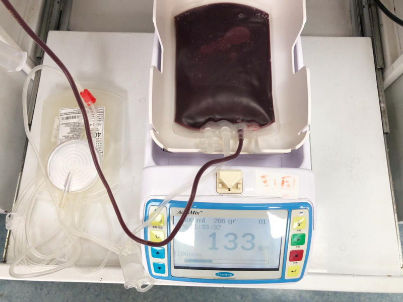 首先獻(xiàn)血時候?qū)ρ旱某醮魏Y選,采集無名指的血,是因?yàn)闊o名指一是滑液囊不向手掌深部延伸;大拇指跟小指頭的肌腱活動范圍廣,發(fā)生感染的話炎癥會范圍大。無名指在五指中不如其他手指的的功能大,所以都在無名指上采血。還有采血過程中,獻(xiàn)血屋的工作人員會在手臂位置綁著一條白色的帶子。這個叫壓脈帶,一次性止血帶。采血過程中一直綁著壓脈帶是有助于減緩血液回流心臟的速度,采血得到順暢效果。獻(xiàn)血時候血袋在采血稱上面不停的搖擺,是因?yàn)檠镉锌鼓齽2裳獣r候如果不用這個措施血液會發(fā)生凝固效果,采血稱一定頻率不停搖擺,使抗凝劑與血液充分混合,從而達(dá)到使血液不凝固的目的。還有在采血過程中還有三個試管。采集好的血液會送往血站的成分供儲科進(jìn)行分離制備,為最大程度確保每一袋血液是安全的,而試管則會被送到成分檢測科進(jìn)行血液檢測。血站要對所有采集回來的血液標(biāo)本進(jìn)行丙氨酸氨基轉(zhuǎn)移酶(ALT)、血型檢測、乙型肝炎病毒、丙型肝炎病毒、獲得性人類免疫缺陷病毒(HIV)、梅毒螺旋體檢測。每個血袋都有條形碼,標(biāo)識以及可追溯性。同一獻(xiàn)血碼至少在50年內(nèi)不得重復(fù)。